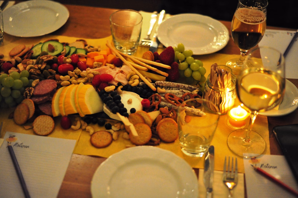 Je nach Buchung wird das Tasting von passenden Snacks, kleinen Food-Pairings oder einem reichhaltigen Tischbüfett begleitet.
